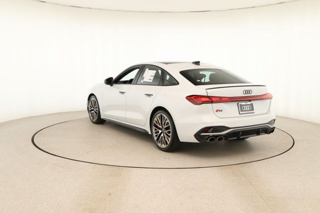 Glacier White Metallic 2025 Audi All-new S5 3.0T Prestige quattro quattro 7-Speed Automatic S tronic 3.0L TFSI 10 Speakers, 4-Wheel Disc Brakes, 7 Additional Digital DRL Signatures, ABS brakes, Acoustic Front Door Glass, Adaptive Cruise Assist, Air Conditioning, Alloy wheels, AM/FM radio: SiriusXM w/ 360L, Animation for Headlights, Anthracite Audi Rings, Audi Exclusive Design Package, Audi S Beam, Auto High-beam Headlights, Auto-dimming door mirrors, Auto-dimming Rear-View mirror, Automatic temperature control, Bang & Olufsen Front Headrest Speakers, Bang & Olufsen Sound System w/3D Sound, Black Exterior Door Handle Inlays, Black Exterior Mirror Housings, Black Exterior Trim, Brake assist, Bumpers: body-color, Compass, Contrast Stitching in Ocean Blue, Dark Chrome Exhaust Tips, Delay-off headlights, Digital OLED Taillights, Dinamica Elements, Driver door bin, Driver vanity mirror, Dual front impact airbags, Dual front side impact airbags, Dynamic Interaction Light, Edges of Floor Mats, Edition One, Electronic Stability Control, Emergency communication system: Audi connect CARE, Exterior Parking Camera Rear, Fine Nappa/ Pear Nappa Leather Seating Surfaces, Four wheel independent suspension, Front anti-roll bar, Front Bucket Seats, Front Center Armrest, Front dual zone A/C, Front fog lights, Front reading lights, Front Sport Seats Plus w/Ventilation & Massage, Garage door transmitter: HomeLink, Head-Up Display, Headlight Washers, Heated door mirrors, Heated front seats, Heated Front Sport Seats, Heated Rear Seats, Heated steering wheel, Heated Steering Wheel w/Hands-On Detection, Illuminated entry, Interior Trim in Vanadium Look, Knee airbag, Leather steering wheel, Leather/Dinamica Seating Surfaces, LED Interior Lighting Pro Package, Liquid Chrome Air Intakes & Rear Diffusors, Low tire pressure warning, Manual Rear Side Window Sunshades, Matrix Design LED Headlights, Memory seat, MMI Passenger Display w/10.9" Screen, Navigation system: MMI Navigation plus, Occupant sensing airbag, Outside temperature display, Overhead airbag, Overhead console, Panic alarm, Panoramic Glass Roof w/Variable Light Control, Park Assist Plus, Passenger door bin, Passenger vanity mirror, Power door mirrors, Power driver seat, Power Liftgate, Power passenger seat, Power steering, Power windows, Prestige Package, Radio data system, Radio: Audi Sound System, Rain sensing wipers, Rear air conditioning, Rear anti-roll bar, Rear reading lights, Rear seat center armrest, Rear window defroster, Remote keyless entry, Seat Covers, Security system, Speed control, Speed-sensing steering, Speed-Sensitive Wipers, Split folding rear seat, Spoiler, Sport Adaptive Damping Suspension, Sport steering wheel, Steering wheel mounted audio controls, Tachometer, Telescoping steering wheel, Tilt steering wheel, Top View Camera System, Traction control, Trip computer, Turn signal indicator mirrors, USB Power Delivery (2x60W Front & 2x100W Rear), Variably intermittent wipers, Wheels: 19" 5-Double-V-Spoke Design Bi-Color Finish, Wheels: 20" Multispoke-S Design.