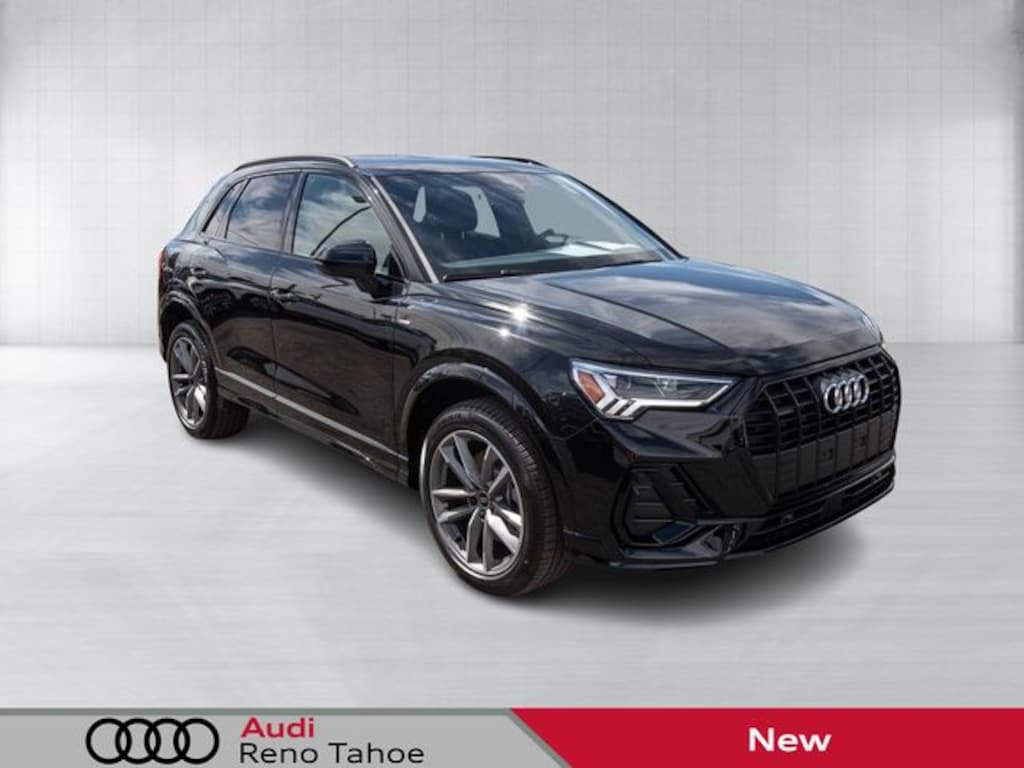 Mythos Black Metallic 2025 Audi Q3 Premium S Line quattro quattro 8-Speed Automatic with Tiptronic 2.0L 4-Cylinder TFSI 10 Speakers, 4-Wheel Disc Brakes, ABS brakes, Air Conditioning, Alarm w/Motion Sensor, Alloy wheels, AM/FM radio, Audi Advanced Key, Audi Beam-Rings, Audi smartphone interface (Apple CarPlay/Android Auto), Auto High-beam Headlights, Auto-Dimming Power-Folding Exterior Mirrors, Auto-Dimming Rear-View Mirror, Automatic temperature control, Black Exterior Trim, Black Optic Sport Package, Black Roof Rails, Brake assist, Bumpers: body-color, Convenience Package (DISC), Delay-off headlights, Driver door bin, Driver Seat Memory, Driver vanity mirror, Dual front impact airbags, Dual front side impact airbags, Electronic Stability Control, Emergency communication system: Audi connect CARE, Exterior Parking Camera Rear, Four wheel independent suspension, Front anti-roll bar, Front Bucket Seats, Front Center Armrest, Front dual zone A/C, Front fog lights, Front reading lights, Fully automatic headlights, Garage Door Opener (HomeLink), Heated door mirrors, Heated Front Bucket Seats, Heated front seats, Illuminated entry, Knee airbag, Leather Seating Surfaces, Leather Shift Knob, Leather steering wheel, LED Interior Lighting Package, Low tire pressure warning, Occupant sensing airbag, Outside temperature display, Overhead airbag, Overhead console, Panic alarm, Passenger door bin, Passenger vanity mirror, Power door mirrors, Power driver seat, Power Liftgate, Power moonroof: Panoramic, Power passenger seat, Power steering, Power windows, Radio data system, Radio: Audi Sound System, Rain sensing wipers, Rear air conditioning, Rear anti-roll bar, Rear fog lights, Rear reading lights, Rear seat center armrest, Rear window defroster, Rear window wiper, Remote keyless entry, SiriusXM, Speed control, Speed-sensing steering, Split folding rear seat, Spoiler, Sport Front Bucket Seats, Steering wheel mounted audio controls, Tachometer, Telescoping steering wheel, Tilt steering wheel, Traction control, Trip computer, Turn signal indicator mirrors, Variably intermittent wipers, Wheels: 18" 5-V-Spoke-S Design, Wheels: 19" 5-Double-Arm Design, Wireless Phone Charging Pad.