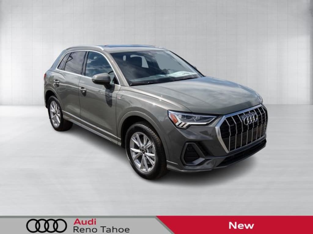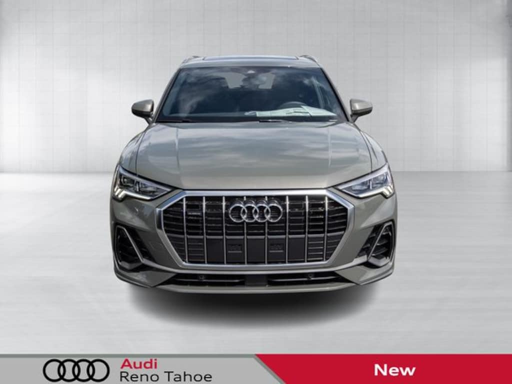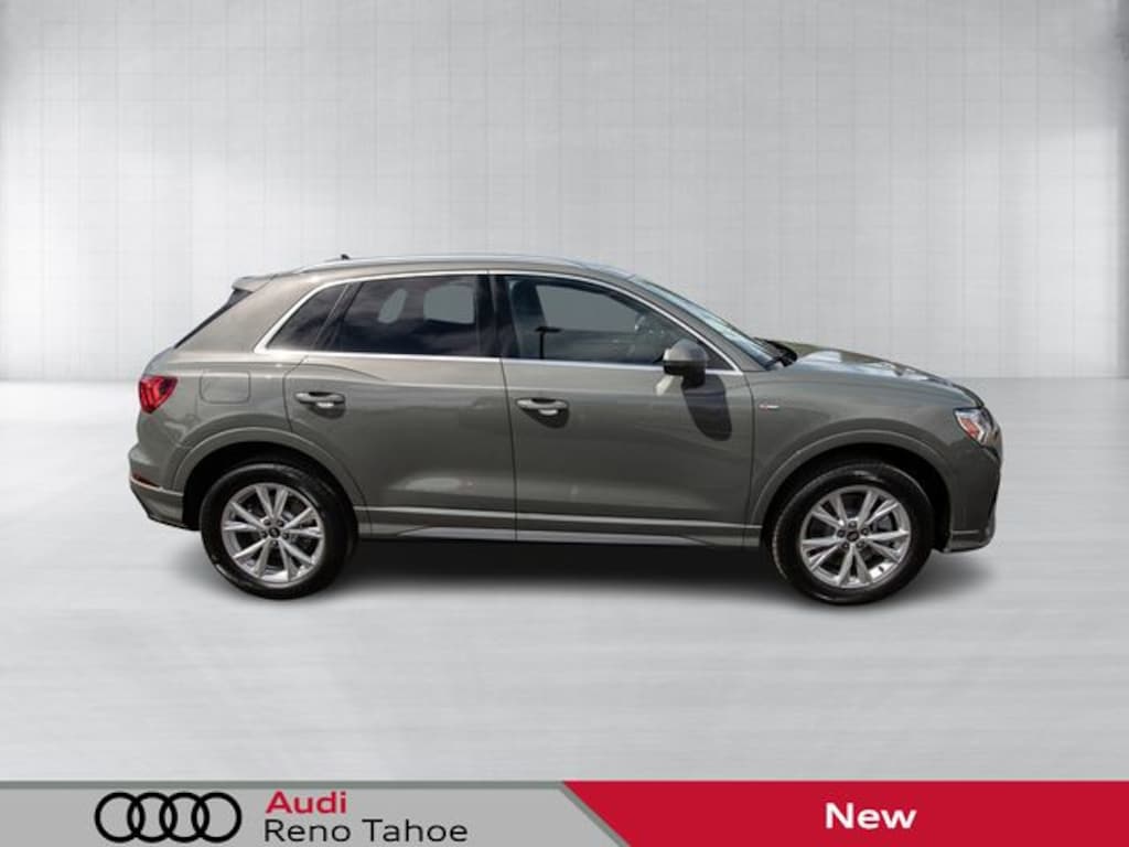 Chronos Gray Metallic 2025 Audi Q3 Premium S Line quattro quattro 8-Speed Automatic with Tiptronic 2.0L 4-Cylinder TFSI 10 Speakers, 4-Wheel Disc Brakes, ABS brakes, Air Conditioning, Alarm w/Motion Sensor, Alloy wheels, AM/FM radio, Audi Advanced Key, Audi Beam-Rings, Audi Cargo Box, Audi Guard Protection Kit, Audi smartphone interface (Apple CarPlay/Android Auto), Auto High-beam Headlights, Auto-Dimming Power-Folding Exterior Mirrors, Auto-Dimming Rear-View Mirror, Automatic temperature control, Brake assist, Bumpers: body-color, Convenience Package (DISC), Delay-off headlights, Driver door bin, Driver Seat Memory, Driver vanity mirror, Dual front impact airbags, Dual front side impact airbags, Electronic Stability Control, Emergency communication system: Audi connect CARE, Exterior Parking Camera Rear, Four wheel independent suspension, Front anti-roll bar, Front Bucket Seats, Front Center Armrest, Front dual zone A/C, Front fog lights, Front reading lights, Fully automatic headlights, Garage Door Opener (HomeLink), Heated door mirrors, Heated Front Bucket Seats, Heated front seats, Illuminated entry, Knee airbag, Leather Seating Surfaces, Leather Shift Knob, Leather steering wheel, LED Interior Lighting Package, Low tire pressure warning, Occupant sensing airbag, Outside temperature display, Overhead airbag, Overhead console, Panic alarm, Passenger door bin, Passenger vanity mirror, Power door mirrors, Power driver seat, Power Liftgate, Power moonroof: Panoramic, Power passenger seat, Power steering, Power windows, Radio data system, Radio: Audi Sound System, Rain sensing wipers, Rear air conditioning, Rear anti-roll bar, Rear fog lights, Rear reading lights, Rear seat center armrest, Rear window defroster, Rear window wiper, Remote keyless entry, SiriusXM, Speed control, Speed-sensing steering, Split folding rear seat, Spoiler, Steering wheel mounted audio controls, Tachometer, Telescoping steering wheel, Tilt steering wheel, Traction control, Trip computer, Turn signal indicator mirrors, Variably intermittent wipers, Wheels: 18" 5-V-Spoke-S Design, Wireless Phone Charging Pad.